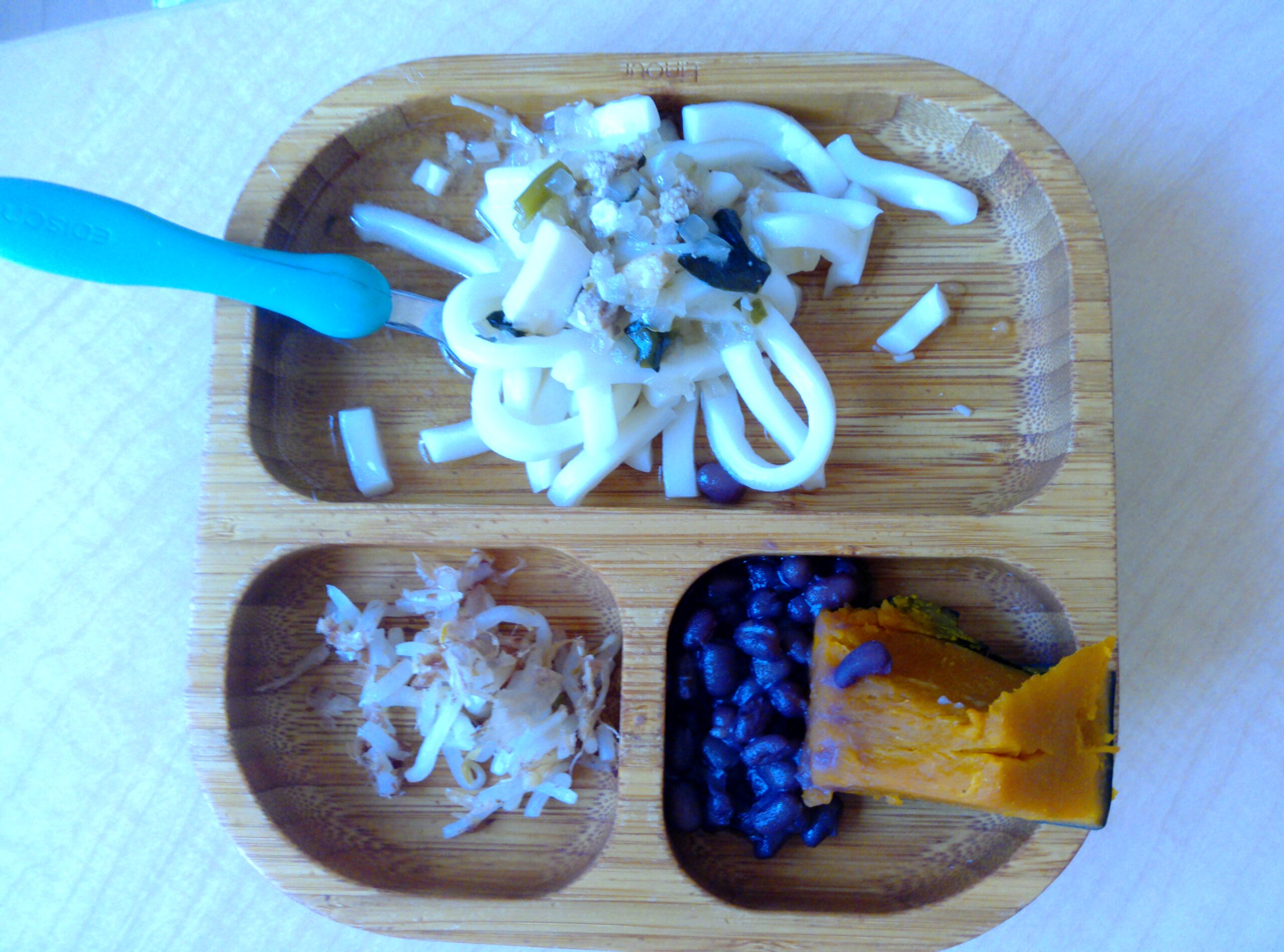 今日の給食は、うどんです。
