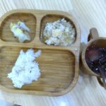 根菜たっぷりの豚汁。じゃこが混ざったごはんを食べました。