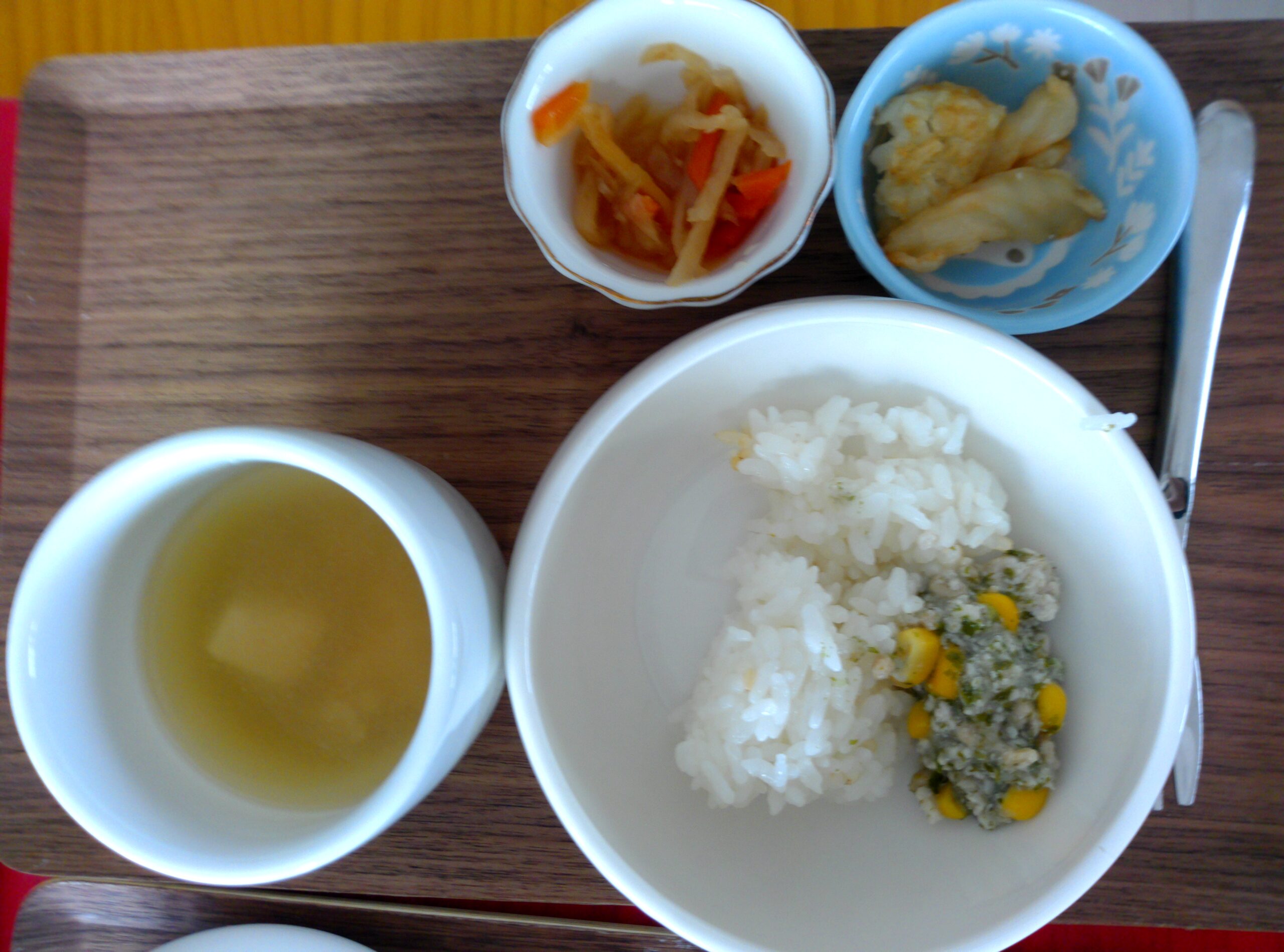 そぼろあんかけごはん 2025年12月23日 今日は、麻婆豆腐だったのですが変更して そぼろあんかけを作りました。 すりおろしれんこんがとろみをつけてくれました。 青のりもかけて食べました。 おかずに切り干し大根とポテトを付けました。 HOME献立そぼろあんかけごはん