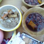 ひき肉 春菊 ごぼう 人参 トマト 玉葱 きのこを使って作りました。