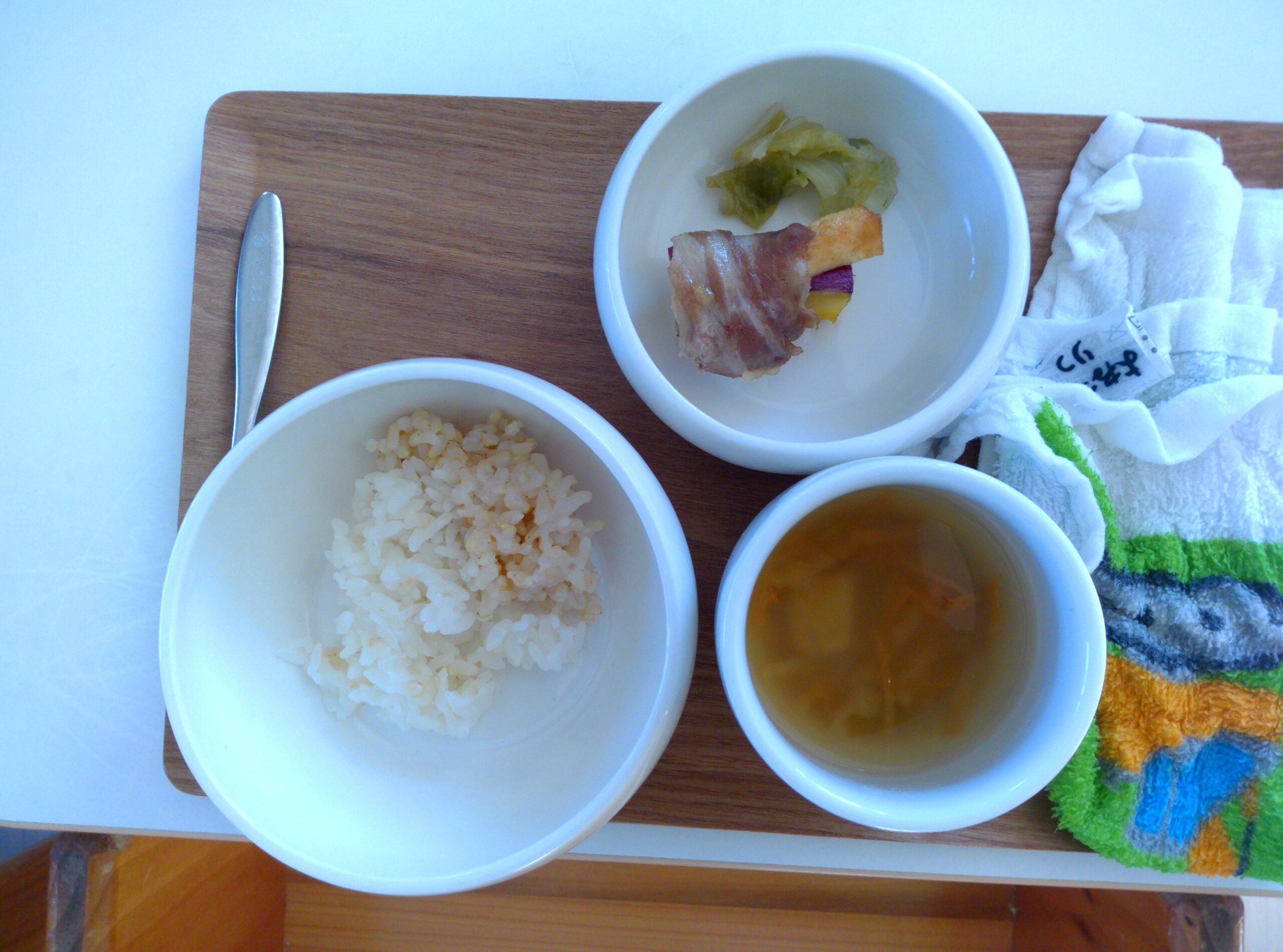 今日の給食は、豆腐の肉巻きでした。