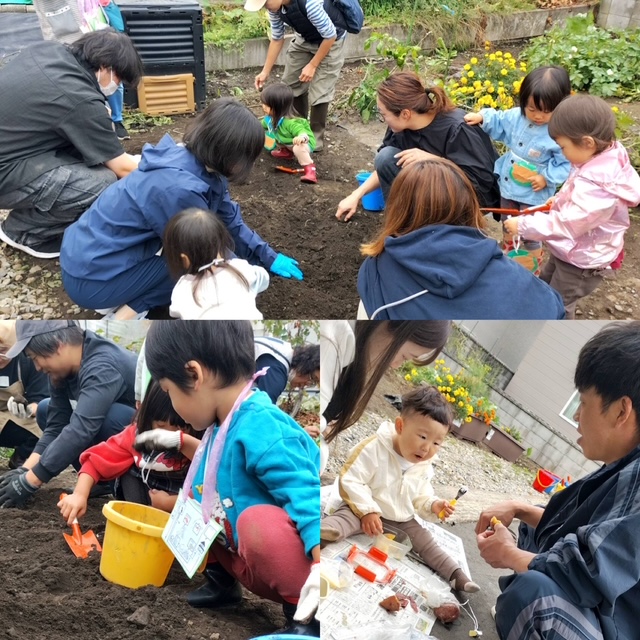 5月31日(土)に畑の苗植えが行われました。 トマトとバジル ナスとマリーゴールドは相性がいいそうで・・・